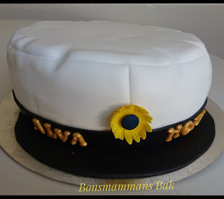 Täckt med sockerpasta och dekorationerna är gjorda i sockerpasta och målade med ätbar livsmedelfärg.
